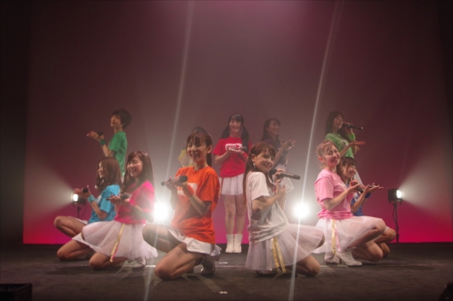 続いてメンバーが二組に分かれ、「イツレン」(新木さくら、桜 愛美、海月らな、坂井朝香、安藤千紗、MYU)、「CHOKICHOKI」(山木彩乃、髙木悠未、吉川千愛、福山果奈、小日向舞菜)の公演限定曲を披露。その後、再びメンバー全員で「冒険」「Baby」「ウェッサイ!!ガッサイ!!」「V to ROAD」を立ち続けに披露、11人が一体感のあるダンスパフォーマンスを見せライブは終了した。