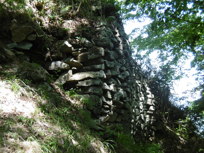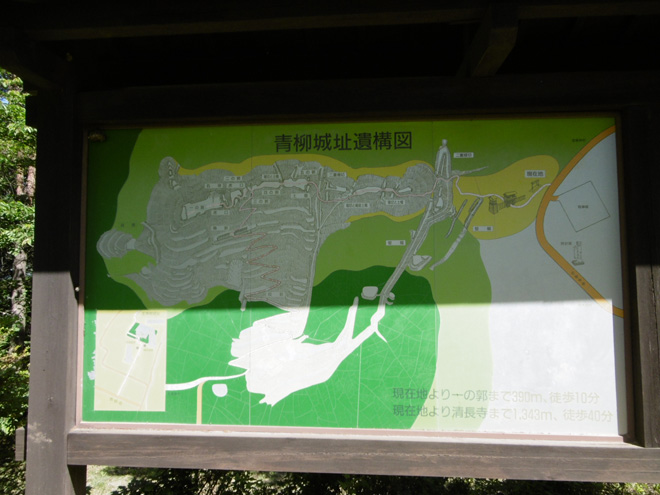 確かにこういう門や塀があるとマニアじゃない人からすると雰囲気があってタイムスリップした感もあっていいのかな。でもさ、もっと自分たちの国の歴史に自信持って良いと思うんだけどな。間違ったこと伝えてもしょうがないやんけ。客寄せの意味もあるんでしょうが、それも結局一時的なもので終わってしまう場合も多いしさ。確かなデータが残ってないならまずは発掘調査にお金をかけるべきだし、それでも新たなデータが出てこないなら場内の掲示板にわかってるだけの歴史をわかりやすい文章で書いておくだけで良い。不明な点もありますと正直に書いてくれる方が歴史がより深くなると私は思う。真実は戦国時代の人にしかわからないわけだからね。わからない謎があるから歴史は面白いと思うわけ。話を盛るのは絶対に反対。作り話もうんざり。真実も知らないのに語っちゃううざいファンと同じ。そんなのなくてもこの青柳城は凄い城ですよ。とてつもなく素晴らしい城だとマニアは評価してます。本郭から見える景色。最高じゃないですか。布目積みの石垣も必見。見学は不可でも本郭の真下には更なる堀切も存在しているし、ところどころに小さな曲輪も残っている。城のスペースが非常に細くて長い青柳城だが、その周りにある木で隠れたディティールにマジで感動するのである。