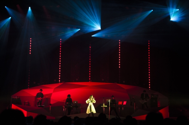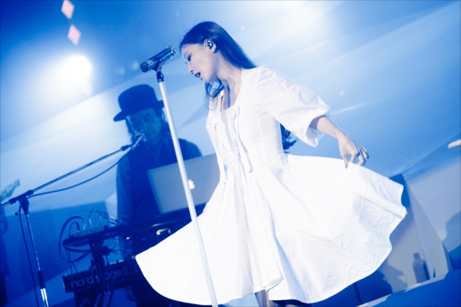 続いて「デビュー当時からブレていない意志。それは水のようなアーティストでい続けたい、ということ。何にでも形を変えて、同じ時は一度もない。いつまでも捕まえられない存在でいたい。」「そんな想いを書いた曲があります」と、「ネコに風船」を披露した。アンコールでは、ファンから「Happy Birthday」の歌のサプライズプレゼントを受け取ると、「丸14年一緒にいてくれてありがとう。これからも一緒にいてください。」と、14年間の感謝とこれからの意志を伝え、<LOVE IS BORN 〜14th Anniversary 2017〜>を締めくくった。