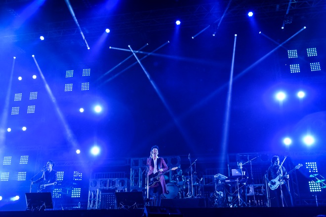 SE「THRILL」が鳴った瞬間、歓迎の大歓声が巻き起こる。ステージに現れた布袋は気持ち良さそうに歓声を浴び、次の瞬間、ギターを歌わせた。曲は「Battle Without Honor or Humanity」。勇壮なギターフレーズが野外に響き渡る。一流の生み出す音には説得力も凄みもある。オーディエンスは“お口あんぐり”状態だ。