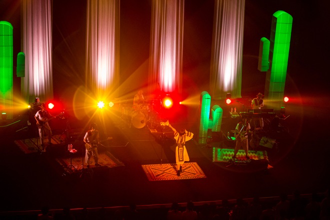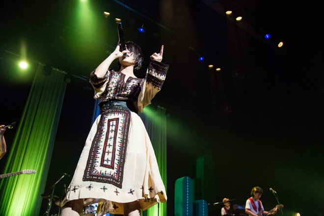 いよいよ幕が上がった3回目の<UTAUTAU>は、ステージ上に超巨大なサボテンのオブジェも出現した荒野のイメージ。登場した植田真梨恵は白いワンピース姿で、爽やかで凛とした佇まいが際立つ。車谷啓介(Dr)、麻井寛史(B)、大楠雄蔵(Key)といったインストロックバンドSensationのメンバーに、野口亮(G)、北田慧(G)を加えたバンド=“サボテンズ”とともに、荒野に立ち、歩みだしていく姿は、サン=テグジュペリの「星の王子様」を思わせるような雰囲気だ。