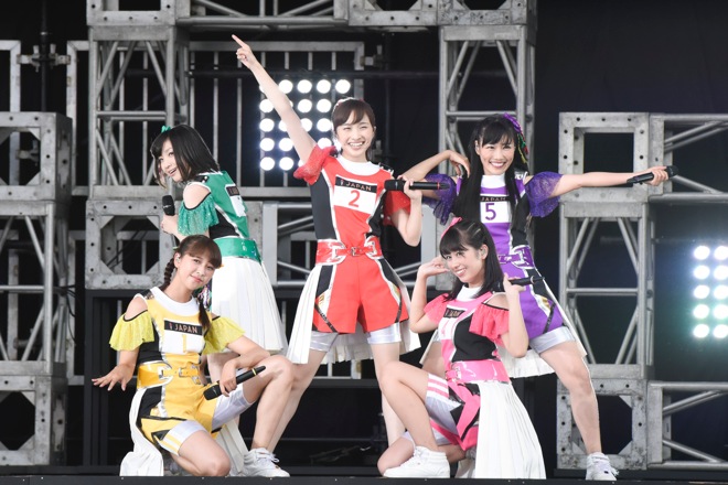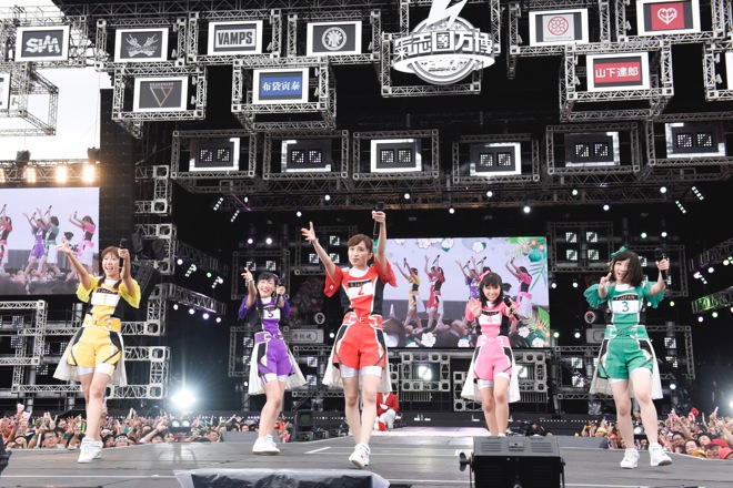 天気はあいにくの雨模様だったが、スクリーン映像に南国の青空を映し出したポップナンバー「ココ☆ナツ」を届けると、「行くぜっ!怪盗少女」ではセンターステージに向かう花道に障害物競争の網くぐりが設置されていた。何とかそれを潜った夏菜子の名物“エビ反りジャンプ”が炸裂すると、ラストは「コノウタ」でフィニッシュ。「来年も呼ばれますように」という言葉を残して、メンバーはステージをあとにした。