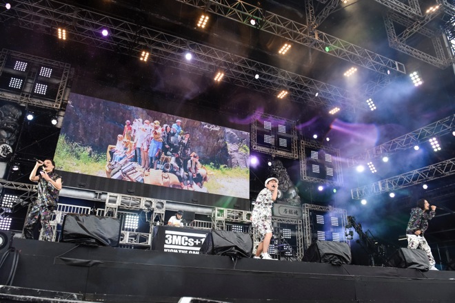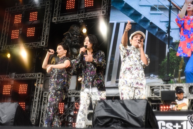 というリップサービスに続けて、雨のなかで耐え忍ぶお客さんにKREVAは、「みんなががんばってくれて嬉しいです」と優しい言葉をかける場面も。そこから「新しいアルバムのなかで一番ラップを再現するのが難しい曲をやります」と披露された「SummerSpot」では、3人がギュッと寄り添い、短いタームで次々に言葉をつなぐスリリングな展開に目が離せなかった。そしてラストは「アンバランス」でしっとりと。満を持しての初<氣志團万博>にして、往年のヒット曲だけに頼ることなく、新しいアルバムで更新されたグループの“いま”で勝負する様が最高にクールだった。