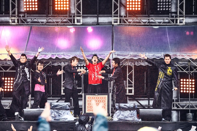 さらに「GO!!世侍塾GO!!」では、「せっかく<氣志團万博>に来たのに、俺らだけで歌うのはもったいないでしょ?」と、楽曲提供を手がけた氣志團から翔やんとヒカルを呼び込んで夢のコラボが実現。そのステージが終わるころ、ボイメンのリーゼントが雨でペシャンコだったが、その表情には夢を叶えた喜びが溢れていた。