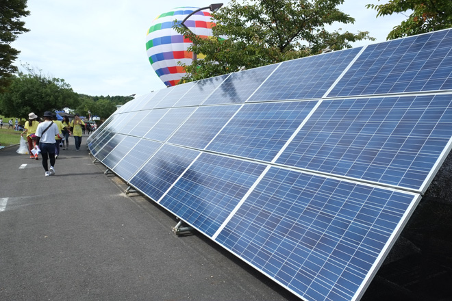 会場内には、様々なところにソーラーパネルが設置され、大いなる恵み「太陽の光」を正面から受けている。安全で健康なパワーにみなぎる、中津川会場には、老若男女さまざまな人々の笑顔がこぼれている。