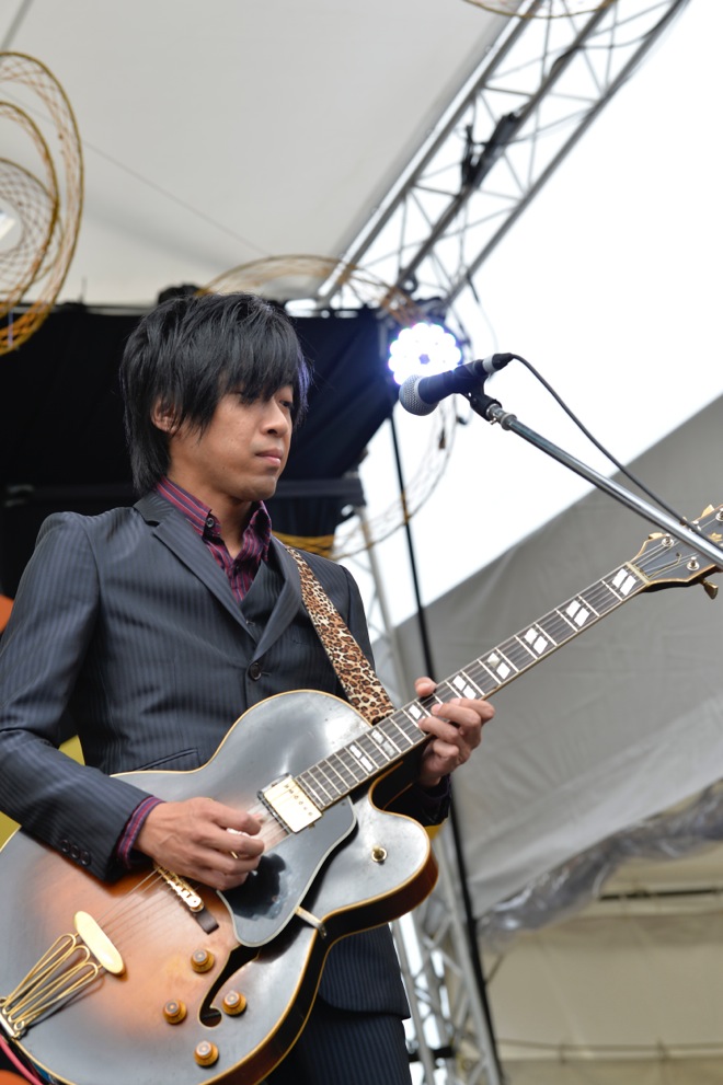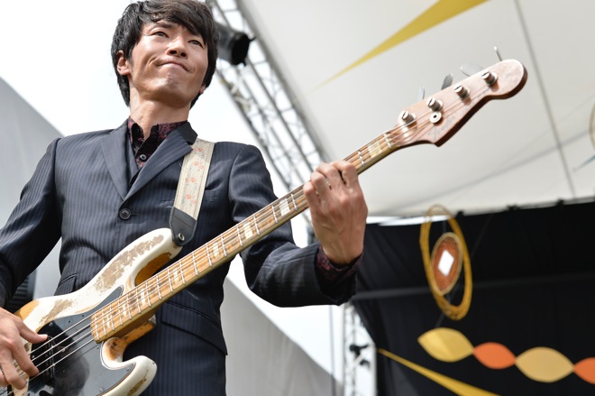 敢えて、気障(キザ)を気取っているような言葉の数々にはこのイベントと、そのオーガナイザーに対する最大のリスペクトと、そして、このイベントで演奏できる無上の喜びが溢れていた。となれば、希望に満ちた1日の始まりを謳いあげるように「Get Up」で始まった演奏にも自然と力が入るというものだ。マツキタイジロウ(G)の軽やかなカッティング、うねるようなナガイケジョー(B)のプレイ、そしてオカモト“MOBY”タクヤ(Dr)がタイトにキメるリズムが作り出すグルーヴとともに自ら“スウィート・ソウル・シンガー”と名乗るコヤマのスウィートな魅力を存分にアピールした。