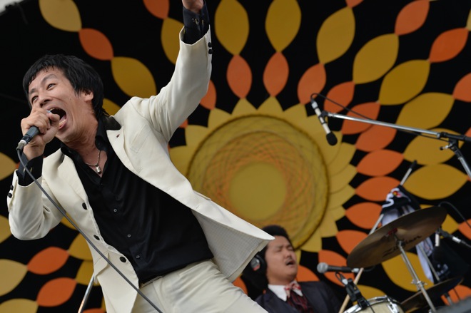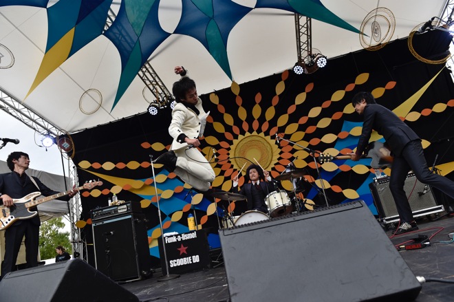 「宇宙からの贈り物のおかげで、安全で楽しいパーティーをやれる。(今年で開催)5年目だから決定的なものにしたい。成功させましょう!」と開会を宣言した<中津川 THE SOLAR BUDOKAN>のオーガナイザー・佐藤タイジから「ノリノリのいっちゃんファンキーな後輩を紹介しようか?! 俺のファンキーな後輩! SCOOBIE DO!!」と紹介されたことに気を良くしたのか。この日は演奏もさることながら、コヤマシュウ(Vo)の曲間のMCも終始絶好調だった。