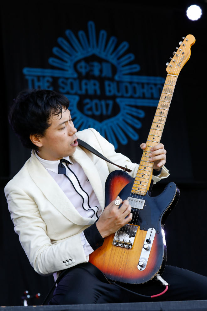 真夏を思わせるような太陽が降り注ぎ、オーディエンスのテンションもどんどん高まっているのだろう。まだライヴ開始前どころか、SEも鳴っていないというのに、湧き上がるコールとハンドクラップ。嬉しい胸騒ぎがする中、現代のロックンロール伝道師、THE BAWDIESが<中津川 THE SOLAR BUDOKAN>に初登場だ。