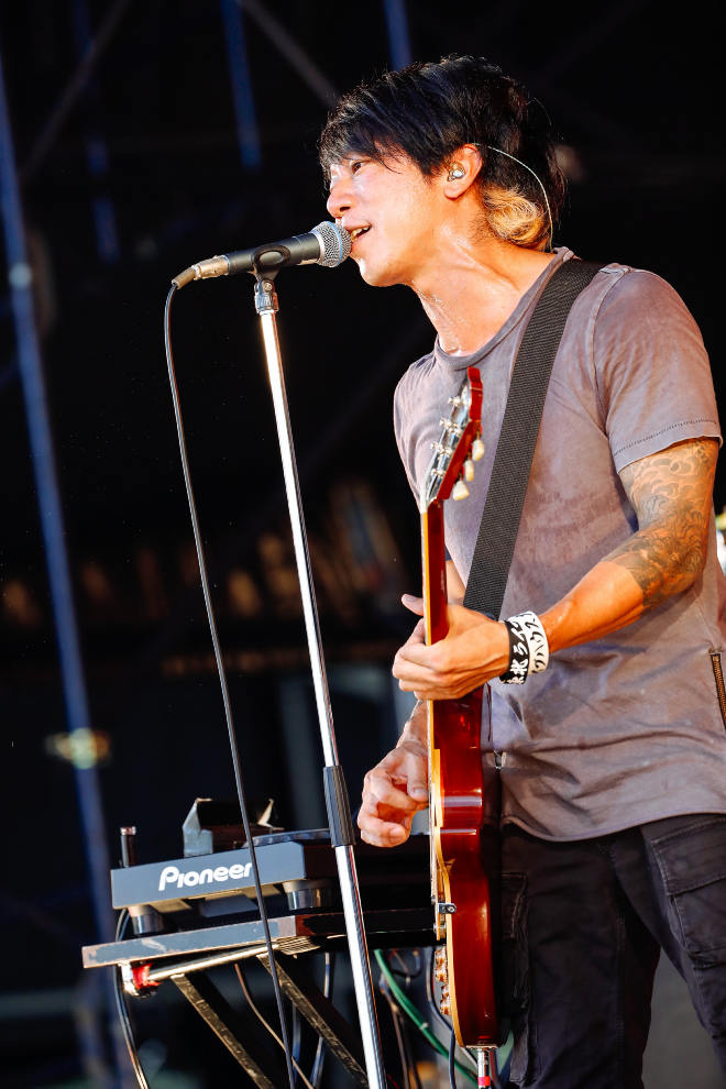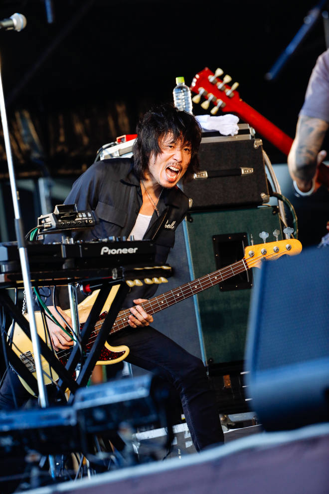 「こんにちは、the HIATUSです。夏フェスだね、これ」と、照りつける太陽と熱いプレイに汗をほとばしらせた細美が語りかける。ステージから見る観客もきっと、汗びっしょりなんだろう。そして、「気の利いたことが言えたり、面白い冗談が言えたりしませんが、the HIATUSは全部の音楽を置いていくので、最後までよろしくお願いします」というと、さらにディープでエクスペリメンタルな、the HIATUSのロック・ミュージックへと引き込んでいった。