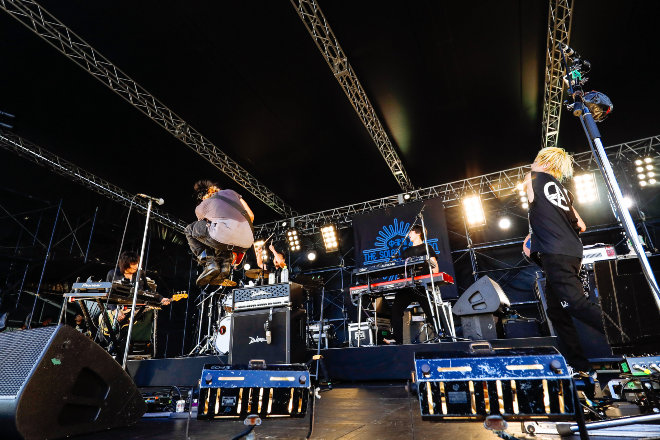 「最高だよ!」と言ってビールを煽った細美は、震災で福島からつながったフェスがここにあって、10年後にはもしかしたら震災を知らない子たちも見にくるのかもしれない、と語りながら、「俺たちが残していかなきゃいけない。ここに集まったあなたたちが、とても心強いです」と続けた。終盤は、気持ちを引っ張り上げていくようなソウルフルな曲「Radio」にはじまり、「Insomnia」の美しくエモーショナルな歌を刻みつけた。“ワン、ツー、スリー、フォー!”のカウントに会場が歓声を上げ、「紺碧の夜に」が始まるや晴れやかな手拍子が起こる。バンドメンバーが向かい合い、笑顔をかわしながらのセッションは見ているだけでも、その痺れるような興奮が伝わってくる。そして観客もメンバーも大きく拍手をしあい、最高のステージを締めくくった。
