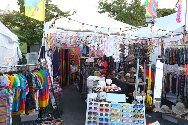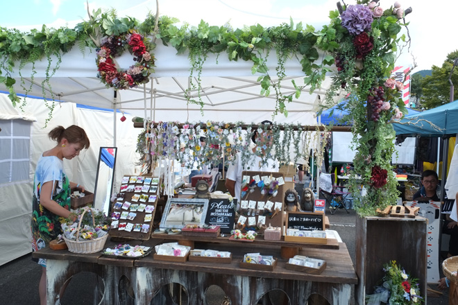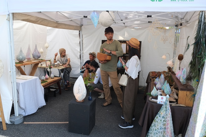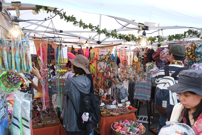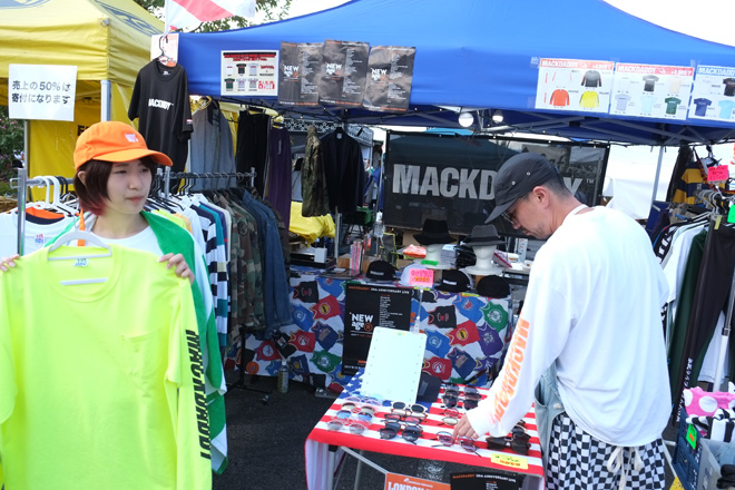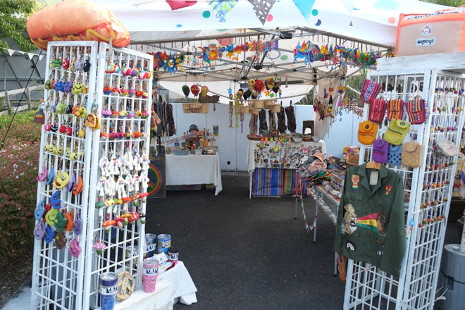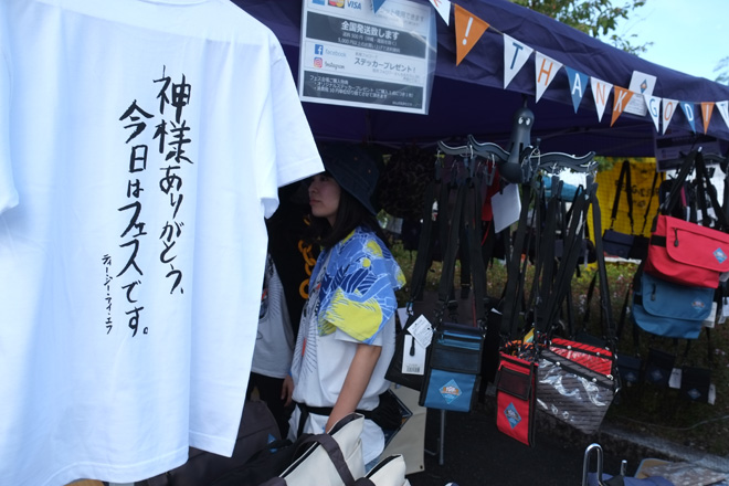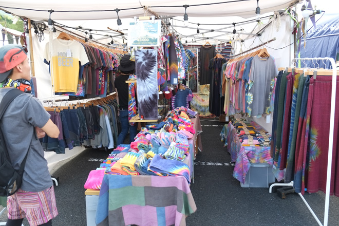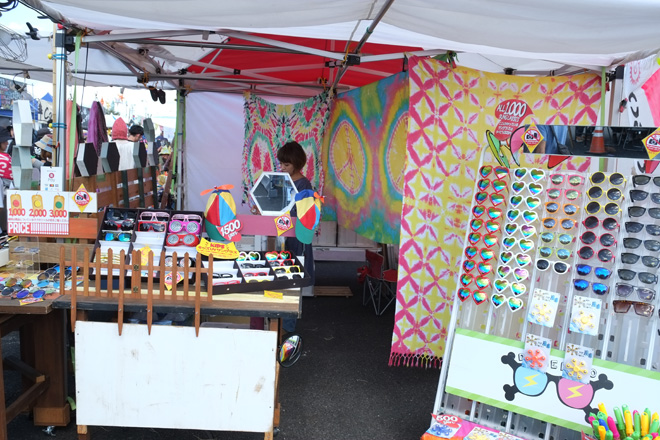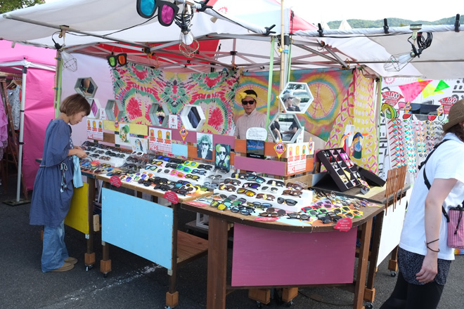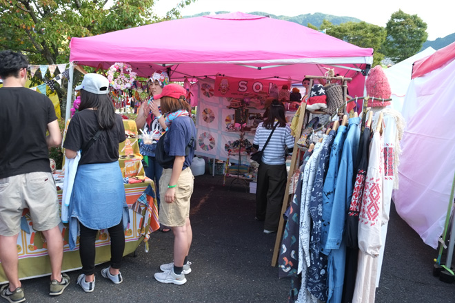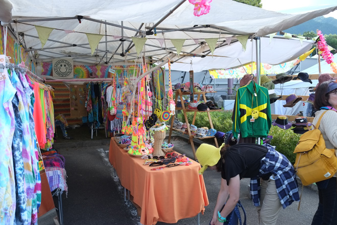 <中津川 THE SOLAR BUDOKAN>が開放的で明るいフェスである要因に、昨日紹介したフードコートとあわせて、色鮮やかなフリマが数多く存在している点が挙げられる。フェスを彩る様々なアイテムが軒を並べており、ぶらりと覗き歩いているだけでも相当楽しい。