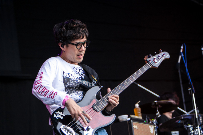 ロケットスタートに成功した彼らは、「準備できてますかー!! いこうぜ!!」(村松 拓)と最新アルバム『Existence』から「Like a Shooting Star」を畳み掛ける。精緻かつ灼熱のハードロック・アンサンブルとスケールのバカでかいメロディのコンボ。なんじゃこりゃと思わず唸る。不条理に抗う想いをストレートな日本語ロックのパワーに乗せた「YOUTH City」、ミクスチャーテイストのリフが至高の狂騒空間を作り出した「The Poison Bloom」。そしてオニィの連打が快楽のリミッターをぶち破る「Rendaman」、アルペジオマスターのウブが構築する叙景的なサウンドスケープを、ひなっちが奏でるメロディが縦横無尽に泳いでいく「村雨の中で」を経て、拓のMCタイム。