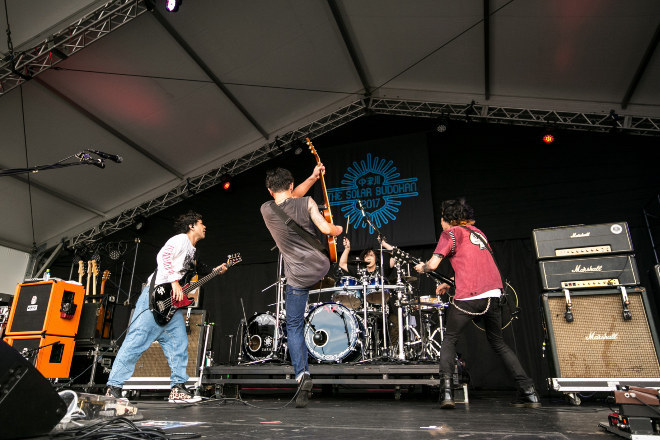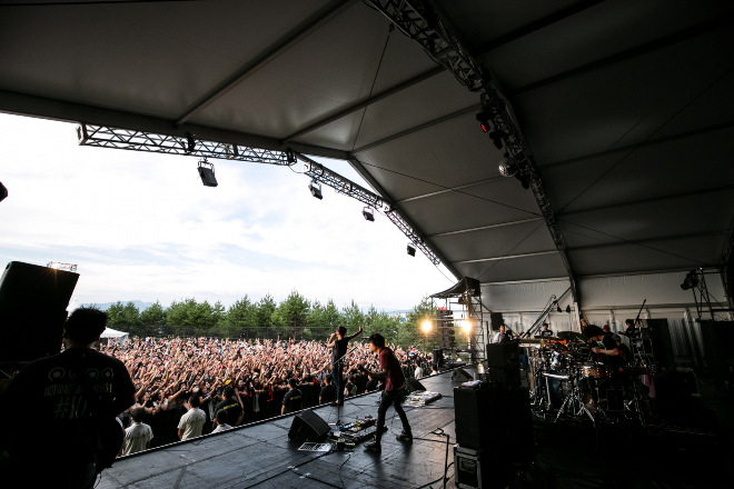 「出てるアーティストに理由があって、主催者に筋がある、こんなに信念があるフェスに呼んでいただけてること自体、とても光栄に思ってます。このフェスが教えてくれること、あるんです。夢は、描くのもいいし見るのもいいけど、掴むもんだということ。それをこのフェスが教えてくれてます。みんなで一緒にいこう。誰にも流されずに自分を持って、未来を掴め!」──村松 拓