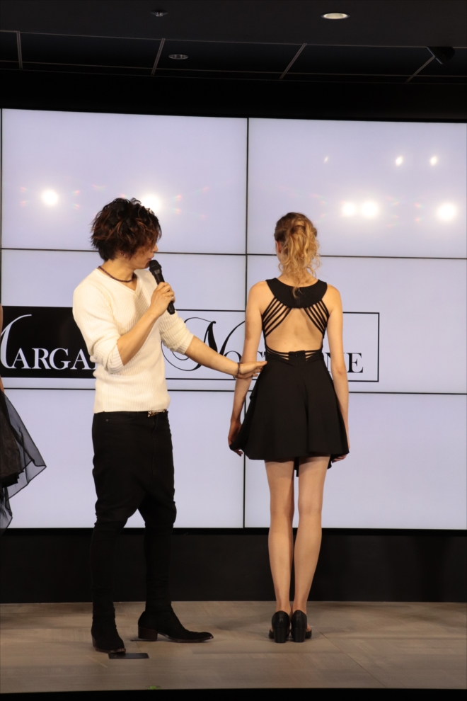 発表会ではドレスも初お披露目。正面から見ると可愛らしいシンプルなドレスだが背中が大きく開いていたりと、いずれもGACKTのオリジナリティあふれるデザインだ。GACKTは一つのドレスに二面性を必ず入れていると語り、かしこまったパーティーだけでなくちょっとした外出の際にも着て欲しいと述べた。ドレスは黒を基調にしたものだが、これも「MARGARET」の白と「NOCTURNE」の黒をモチーフにしているとのこと。