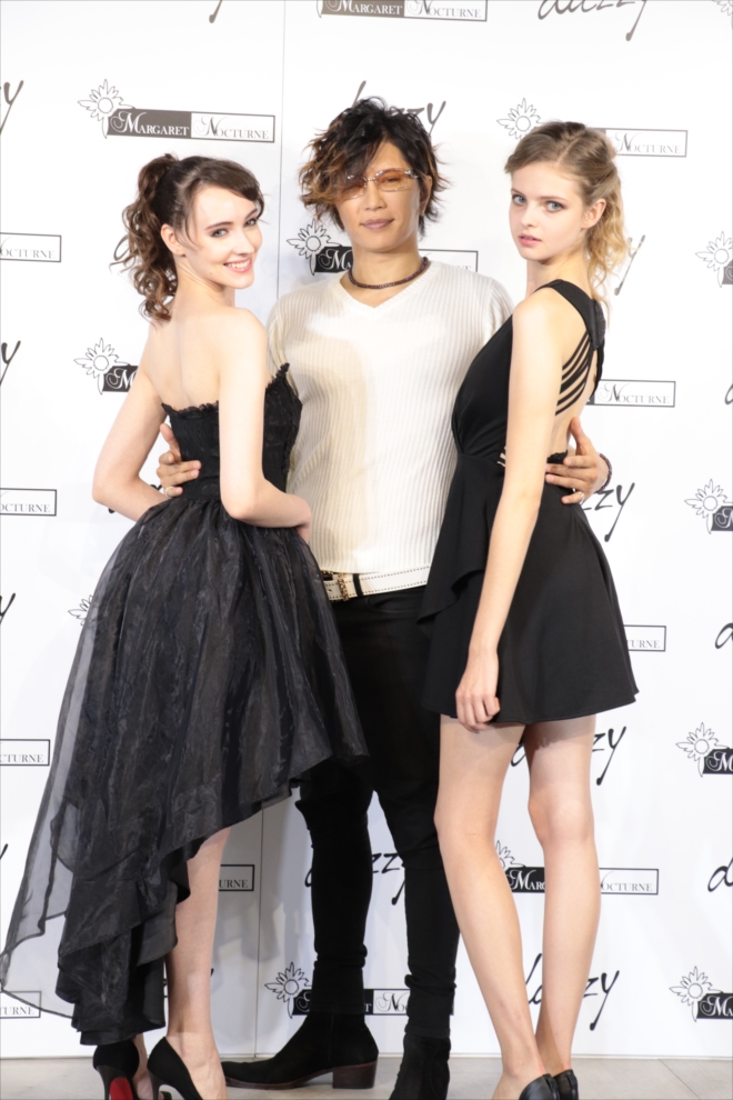 GACKTはパーティードレスを中心に10~20代向けレディスファッションを取り扱う株式会社dazzyにて、新ブランド「MARGARET NOCTURNE(マーガレットノクターン)」を発表。白い花の「MARGARET」と夜の黒を意味する「NOCTURNE」をかけあわせ、無垢な少女が垣間見せる大人の顔というブランドコンセプトだ。