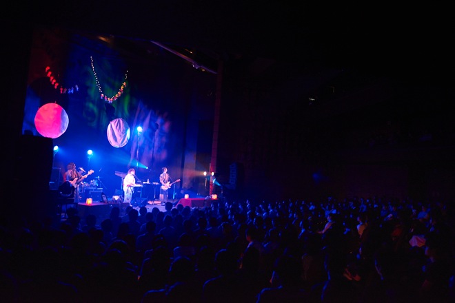 3曲目は「デイドリーム」、そして悲しみを乗り越えて進む気持ちを歌った「カノン」など最新アルバム収録曲から。以降、過去の楽曲を交えつつも、中盤で「ジミー」「スローモーション」「ピンクエレファントの憂鬱」「ソナチネ」を立て続けに聴かせるなど、セットリストは最新アルバムを軸に構成されていた。10周年という節目を迎えた彼らは、楽曲作りやアルバム制作に関しては肩に力が入ることなく自由、やりたいことがやれているというスタンスが伝わってくる。「ソナチネ」を歌う前に内田がこう語った。