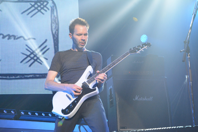 新旧、数多くの名曲を誇るMR.BIGだが、それと同時に彼らは世界トップ・クラスのプレイヤーを擁する超絶テクニカル・バンドでもある。ポール・ギルバートはギター・キッズならずとも見入ってしまう速弾きやトリッキーなフレーズを連発。ショーの大半を白のアイバニーズ・ファイアマンで通した彼だが、ソロ・コーナーではショート・スケールのシグネチャー“PGMM31”も弾いていた。