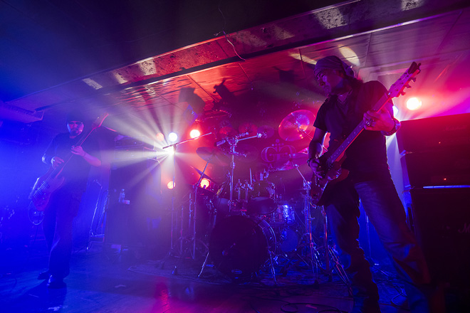 そして午後5時ジャスト、「Rocking Russian」イントロのドラム・ビートからDOOMのショーが始まると、サウンドチェックより数段デカイ轟音が観衆を襲う。1985年に結成、ヒストリーDVD『Insomniac Days – The History of DOOM -』も先日発売されるなどベテランの域に達した彼らだが、落ち着いてしまうつもりはまったくないようだ。エクストリーム・メタルの太い背骨が貫きながら、ジャズやプログレッシブなどトリッキーなフレーズも加えた彼らは、人間を狩ることを覚えた動物のようだ。年輪を経たことで、DOOMはより危険なバンドになった。前半は『Killing Field…』『Complicated Mind』(共に1988)からのナンバー、後半は最新アルバム『Still Can’t The Dead』(2016)からの3連打と、思い切り駆け足でバンドの軌跡を集約してみせた。
