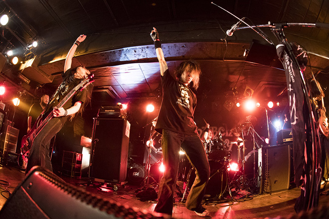 フィードバックから「El Padrino」のイントロが鳴り響くと、その空気に引火して場内は爆裂。Yasuto Murakiのギター・リフ、Junichi Yamamuraのドラムスと共に、スローでダークなドゥーム・メタルのグルーブに乗ってうねりを生み出していく。新ボーカリストのHiroyuki TakanoはSITHTERでも活動するが、CHURCH OF MISERYの金看板を背負って、触ったら切れそうなほどの殺気を放っている。このラインアップでこれからヨーロッパ・ツアーを行い、帰国して12月には東京でワンマン・ライブを行うことも発表。猟奇殺人を題材にとったドゥーム・メタルで長年の人気を誇ってきた彼らが新編成でもその殺傷力と瘴気を持ち備えていることが、この日のステージで証明された。