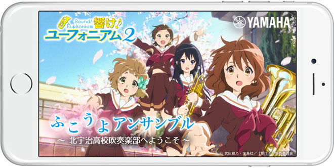 ▲楽器演奏支援アプリ「ふこうよアンサンブル」は「人工知能合奏技術」を搭載した特別版のアプリを展示。 ©武田綾乃・宝島社/『響け!』製作委員会