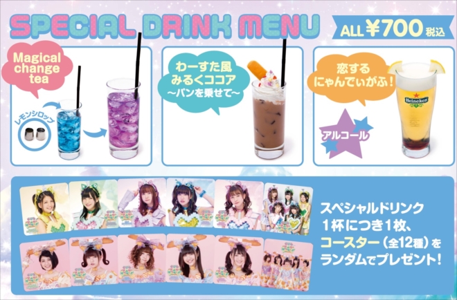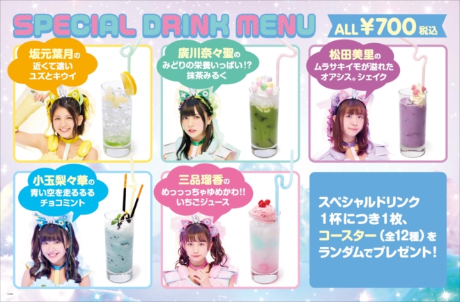 そのほか店内にはトリックアートな写真が撮れるフォトスポットやクレーンゲーム機などが設置されている。さらに最新ミュージックビデオやここでしか見れないスペシャル映像、オフショット写真も展示されている。このコラボカフェは、10月18日(水)までの期間限定で開催される。
