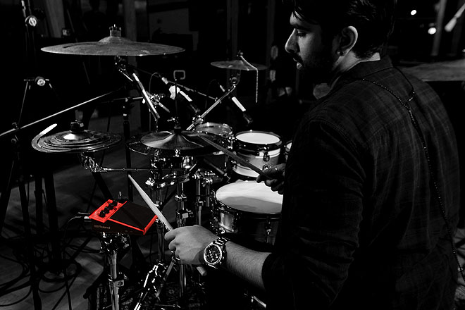 ▲「SPD:ONE」はスティックや手で叩いたり、足で踏んだり、さまざまなスタイルで演奏が楽しめる。ギタリストが演奏しながら足でリズムを鳴らしたり、付属のアタッチメントを使用してドラム・キットやマイク・スタンドに取り付けて使用可能。
