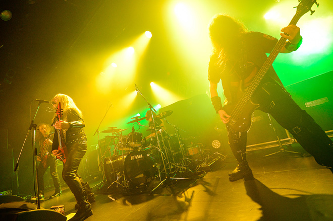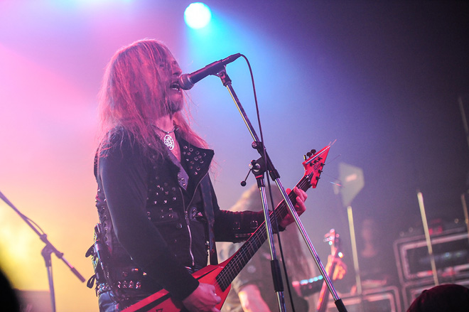 最新作『ゴッズ・オブ・ヴァイオレンス』からでも初期の名曲でもなく、2009年のアルバム『ホーズ・オブ・ケイオス』のタイトル曲というオープニングで意表を突いたクリエイターだが、助走をつけて超絶スピード・スラッシュへと頭から突っ込んでいく。35年にわたって民衆を暴徒へと変貌させてきた彼らのプロの技は、この日も健在だ。