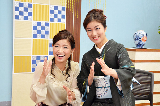 2人目のゲストは五十川ゆき。川野夏美と同じ大分出身ということで、地元のことからスタートしたトークは、4歳になるという五十川ゆきの息子の話題へ。今も大分在住という五十川ゆきは、家を離れる時間が長く、息子にもなかなか会えないのが悩みだという。そしてこの日着ていたドレスについて、“これまでの和服では、粋でカッコいい、自分にないものを演じる楽しさがあったんですが、新曲では家庭の母であり妻であるという気持ちを表現したい”とイメージチェンジの理由を語る。その新曲「愛はさりげなく」のイメージビデオを見たという川野夏美が“ホントにきれいで素敵な映像でした!”と言うと、“撮影のときは下ネタ混じりで…”と五十川ゆきが意外な裏話を明かし、またも大爆笑。15分ほどの短いトークは、とても楽しい雰囲気に包まれていた。