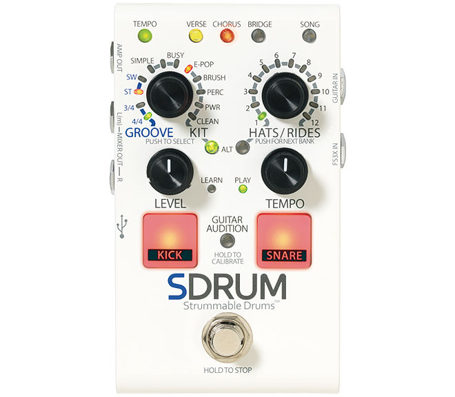 ギタリスト&ベーシストのための世界初のインテリジェント・ドラムマシン、ストラム=ギターをかき鳴らすことでリズム・パターンを入力できる「SDRUM(スドラム)」がDigiTechより登場した。