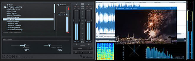 ▲iZotopeの「Ozone 7 Elements」(左)や動画の音声のみを編集できる機能(右)も搭載。