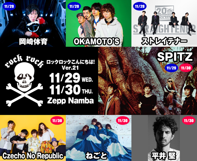 スピッツの恒例ライブイベント<ロックロックこんにちは!Ver.21〜EXPO2017〜>が11月29日、30日に大阪・Zepp Nambaで開催される。このたび、その追加出演者が発表された。