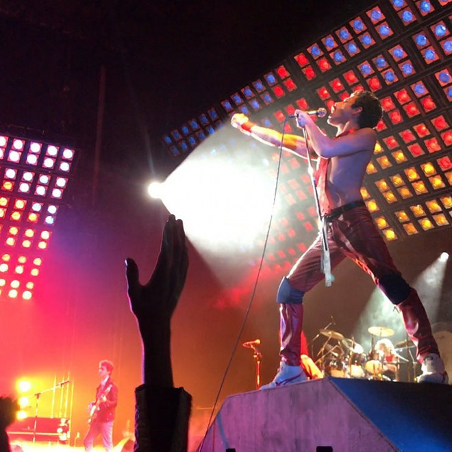 ブライアン・シンガー監督(『ユージュアル・サスペクツ』『X-Men』シリーズ)は、その様子を収めた写真をインスタグラムに続々と投稿。中でも、ラミ・マレック(フレディ役)がステージで熱唱する姿は、「自分を抑えられなかった。このiPhone写真は投稿しないと」とのコメント付きで公開した。