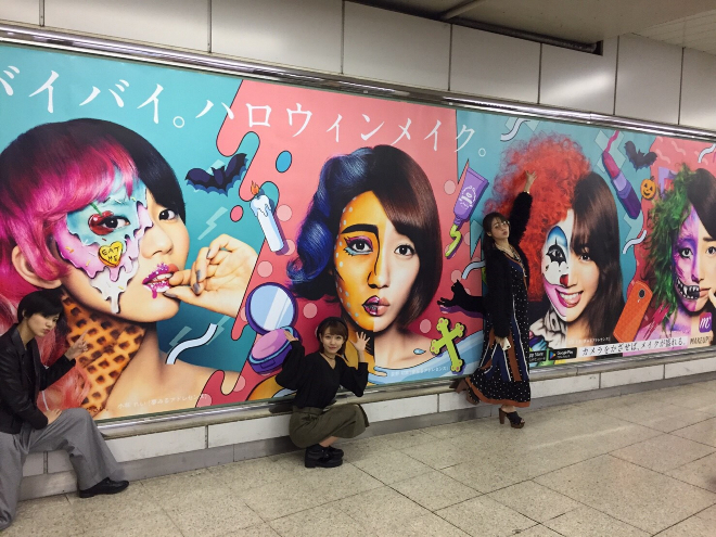 夢アド、ド派手ハロウィンメイクで山手線渋谷駅ホームをジャック