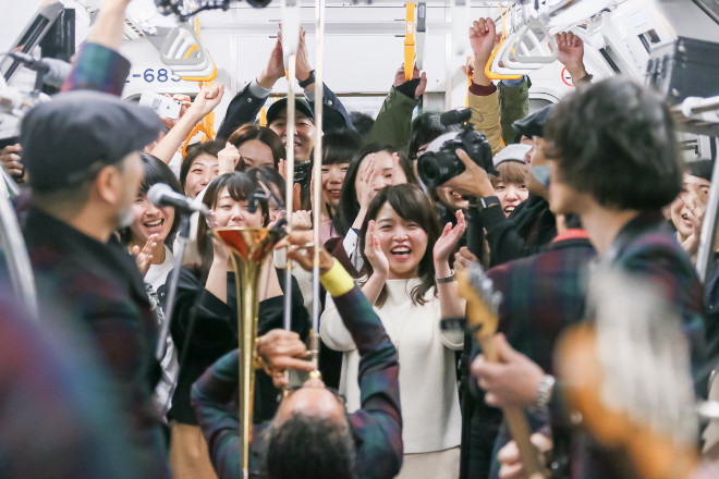東京スカパラダイスオーケストラが出演するライブイベント<東京スカパラダイスオーケストラ シークレット“地下”ライブ on 大江戸線>が、10月29日(日)、都営大江戸線車内にて開催された。