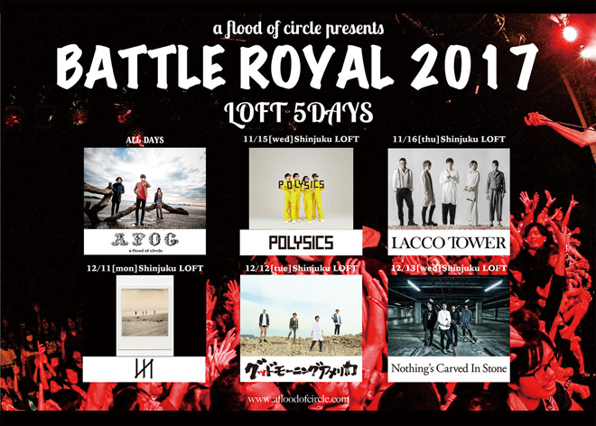 a flood of circleが現在開催中のイベントa flood of circle presents<BATTLE ROYAL 2017>の最終ゲストに、盟友グッドモーニングアメリカの出演が決定した。