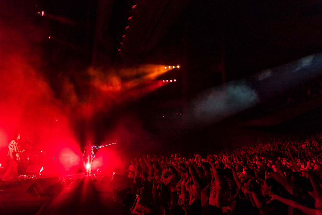 衝動を駆りたてるスリリングなナンバーに満たされた後、純度の高いラブソングが披露された。ユカイもアコースティックギターを手にしたロッカバラード「Lady Blue」。そしてイントロが奏でられるだけで胸がかきむしられる名曲「ルシアン・ヒルの上で」。彼らがただのストリートのならず者であったならば、時代の心を鷲掴みにはしなかっただろう。ワイルドさと表裏一体の刹那と儚さが誰をも魅了したのだ。会場では涙を浮かべて聴き入るオーディエンスの姿が。彼らの琴線に触れたのは、汚れなきピュアな心そのものだった。