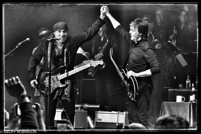 ポールは、2012年にロンドンで開催された<Hard Rock Calling>フェスティバルでブルース・スプリングスティーンのパフォーマンスにゲスト出演。スティーヴンも含め、彼らは一緒にザ・ビートルズの「I Saw Her Standing There」をプレイしたが、規定の終演時間を大幅にオーバーしていたため、マイクの電源が切られるという残念な出来事があった。