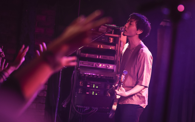 『dry blues』の収録曲を中心に、ミドルナンバー多めで構成した序盤から中盤を経て、終盤はアップテンポの曲が並んだ。するとおもむろに宍戸が「つかぬことをお伺いしますが!皆さんはクソみたいな恋愛をしたこがありますか?」と、叫ぶように問いかける。そのまま「たとえば僕は嘘くさいラヴ・ソングが嫌いだ!」と言い放ち、「I Hate Love Song」へとなだれ込んだ。バンドの初期を思わせるようなザラつきと苛立ちに溢れたロックチューンに、フロアからも拳が突き上がる。そしてラストサビの手前、いつもなら宍戸がシニカルに吐き捨てる〈笑わせんなよ〉の決め台詞をこの日担当したのはなんと観客たち。皆して、日ごろの鬱憤を晴らすかのように、ここぞとばかりに〈笑わせんなよ〉!と叫ぶ光景は壮観だった。実はこの部分、曲が始まる前に宍戸が、嫌なことを思い出して思いっきり叫んで欲しいと観客たちにリクエストしていたのだ。愛ある罵声を浴びたステージは更に勢いをつけ、ラストまで豪快に駆け抜けてみせた。