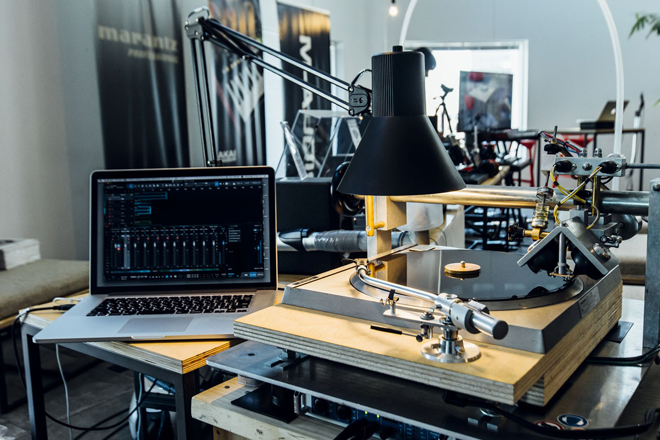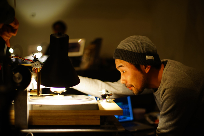 この日は、「CUT & REC」がカッティングマシンを持ち込みワークショップを開催、参加者のオリジナル音源に対してアナログに適したマスタリングを施し、その場で12インチレコードにカッティングするという。参加者は、マスタリングエンジニアの北園敏之とカッティングエンジニアの橋本洋という、専門知識を持つ2人のエンジニアにアドバイスを受けながら、ダブプレートを作成することが可能だ。