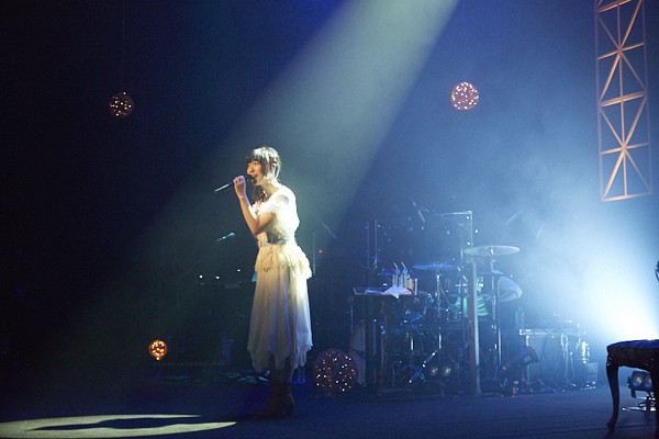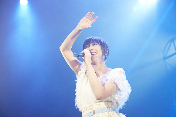 そして最初の声を響かせると、一瞬で会場が優しい空気に包まれる。サビで手を左右に振り合って、さっそく観客と気持ちをひとつにすると、続けてミニアルバムから「さよならソレイユ」、そして「悲劇なんて大キライ」では、ハンカチを回したり、コール&レスポンスをして楽しんだ。