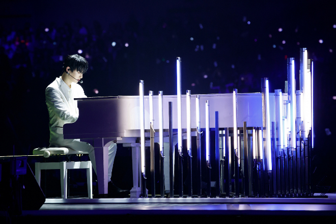 11月29日(水)に横浜アリーナにて開催された<2017 Mnet Asian Music Awards>(2017 MAMA)授賞式のため、初来日したWanna One。日本での初パフォーマンスとなったこの日、ステージ中央のLEDヴィジョンに”Wanna One”のロゴとメンバーが映し出されると、場内は張り裂けんばかりの歓声に包まれた。ヴィジョンが上がり、センターステージからは10名のメンバーが登場。ステージ脇から、ファン・ミンヒョンがグランドピアノを演奏しながら登場し、代表曲「에너제틱 (Energetic) 」を披露した。