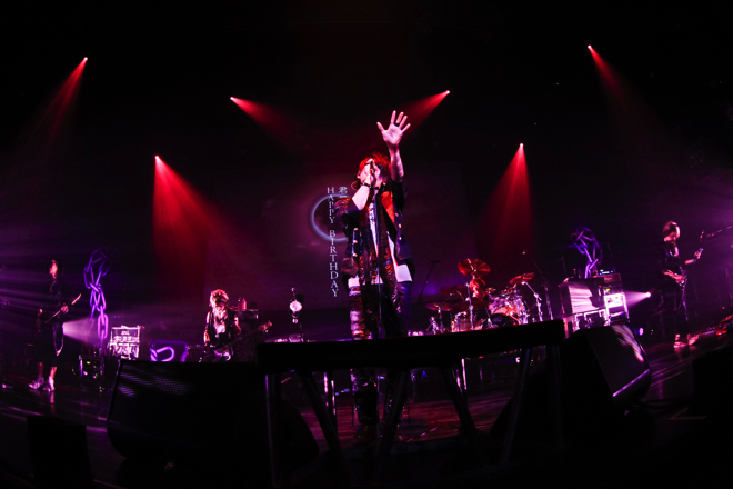 MCでは智(Vo)からのリクエストで海(G)が寒さを吹き飛ばす甘い言葉を贈ったり、5年前の「B」の衣装で登場するため1週間前の大阪公演から4キロのダイエットをしたとTohya(Dr)が告白し、それをメンバーがいじりながらも応援するというアットホームな空気が流れる一幕も。そこから演奏に戻ると一転、大量のスモークが吹き出した「the wonderland from LAB.」ではヘドバンの嵐が生まれ、「Drama Queen」ではタオルをブンブン振り回し、左右に大きく波打つフロア。そんな熱を帯びた会場に続く「SINDRA」の切ないメロディと智の歌声がとても映えていた。
