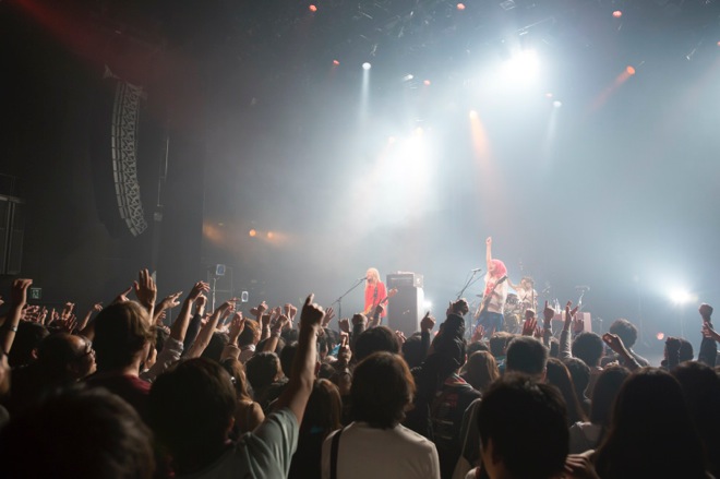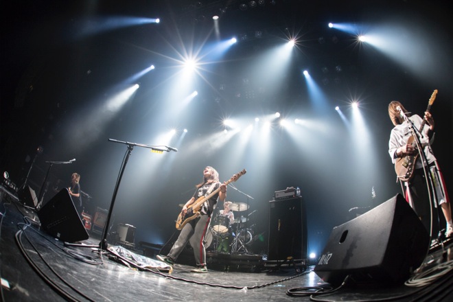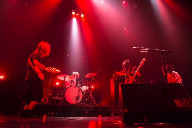 また、MCではゆるキャラぶりを発揮するなど、あらゆる方向から攻め込んでくる多彩さ。「文房具屋さんにある試し書きだけで作った」という新曲「I御中」に心を鷲づかみにされ、気がつけば“スイカスイカスイカスイカ わっしょい!”と全力で叫んでしまうほどのライブ巧者。この日、ボーカルの北澤が誕生日を迎えてメンバー全員が22歳になったthe peggiesは、愛すべきロックバンドとしての貫禄が漂っていた。
