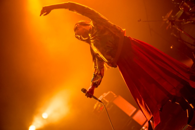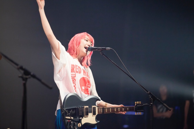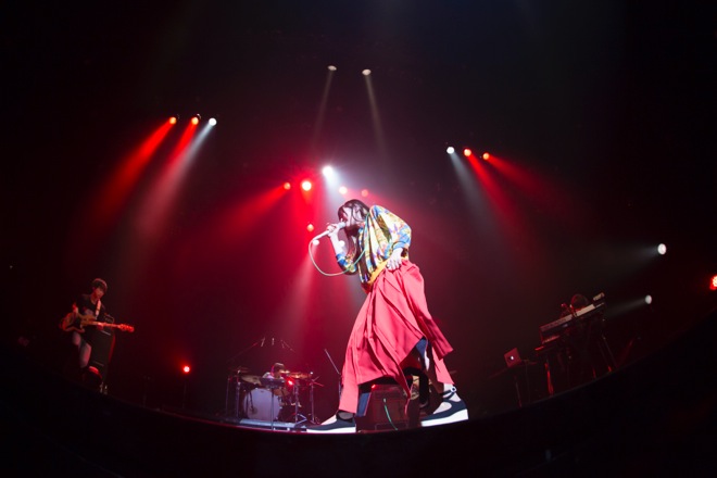 3番手のパスピエは実に多彩でジャンルレス。オルタナティブに、EDMに、クラシックに、はたまた童謡的に、目の前の景色をガラリと変えてしまう。この日出演した様々なバンドがお目当てで集まった多様なオーディエンスも、大胡田の歌声とパフォーマンスが指揮者の如くひとつにまとめあげられていく。その様は見事で、美しい。ダイナミズム溢れるバンドサウンドに、フロアから伸びた無数の拳が揺れて踊って飛び跳ねて、最後は一緒に歌って大団円を迎えた。