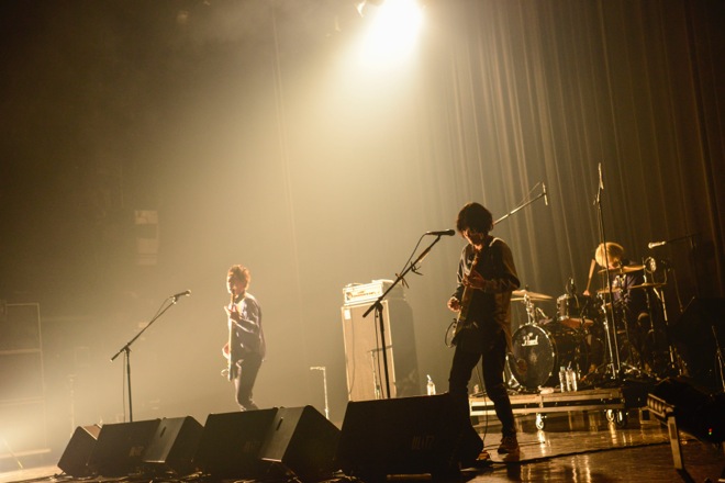 “大人になった僕の変わらない歌を歌う奴等が笑われぬ様に……”と見えない仲間へ語りかけるような「かけら」。“腑に落ちないんだよ”というフレーズが耳を刺す2004年の会場限定シングル「涙の成分について」が続く。倉島のソロナンバー「トワイライト」では、大人になった主人公が少しだけ肩の荷を下ろし“きっと光の差す方向に歩いている”と言う。大人になり、あの頃の未来に立つ“僕ら”への憐憫を、優しい目線で綴る「勿忘草」。もともと時のうつろいに敏感な心情を描く倉島だが、この日はその情感がより胸に迫ってくる。