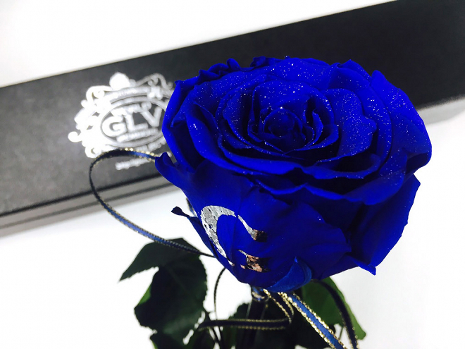 GACKTのファーストシングル「Mizérable」をモチーフに、その世界観を形にした、Gの刻印を印した<ダイヤモンドパウダー・プリザーブドローズ>。フラワーデザイナーが生バラから作るハンドクラフト商品。そのため1本1本それぞれに個性があります。※Gの刻印部分にはダイヤモンドパウダーは使用しておりません。