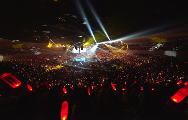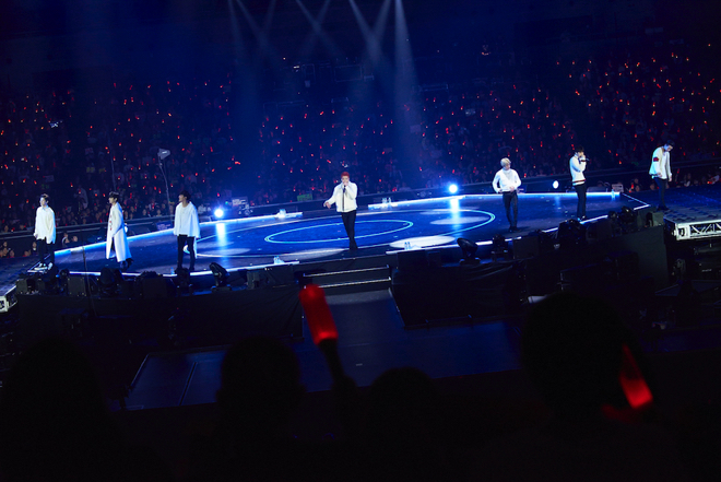 今回は自身初のセンターステージでのライブ。iKONとスペシャルなクリスマスライブを過ごそうと、会場には1万5000人超満員のファン詰めかけた。オリコンウィークリーCDアルバムランキングで初登場1位を獲得したミニアルバム収録のパーティーチューン「B−DAY」からライブがスタートするやいなや、会場のボルテージはマックスに。続けざまに「WHAT’S WRONG?」「SINOSIJAK REMIX」と人気曲を連発。さらにこちらも初となる「フライングステージ」が会場の端と端まで動き、今までになく会場のファンに近づく演出に大きな盛り上がりをみせる。