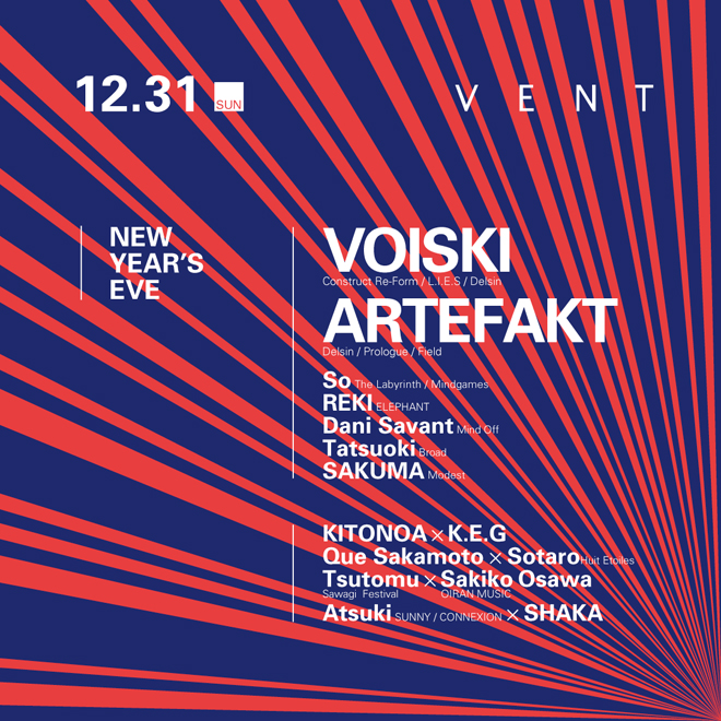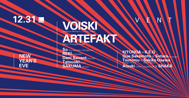 昨年はScubaを迎えて大好評のうちに新年を迎えたが、今年はさらにパワーアップ、もはや絶対的な地位を確立した異端児“Voiski”と、Donato Dozzy辺りが好きな人は確実に抑えておいてほしい新進気鋭のニュースクールテクノ代表“Artefakt ”が揃って登場することとなった。