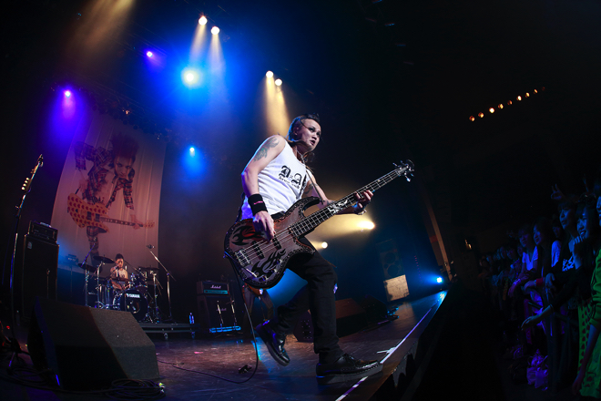 続いて登場したのは、hideバンドやhide with Spread Beaver を重低音で支えて来たCHIROLYN。もともとサポートベーシストとして活躍して来た彼は、現在ソロ名義でシンガーソングライター、弾き語りのライヴ活動も行っている。この日のバンドはスリーピースで、のっけから「DIE or GREED」「Do me favor」とゴリゴリのロックサウンドを披露。2曲終わったところでベースを持ち替えうがいをしたCHIROLYNは「今日、ちょっと声が出ねーの。弱音を吐いても、いい? 一昨日、病院行ったの。今日は死ぬ気でやるから、よろしく」とMC。後半は歌モノで、声が枯れてはいるもののその熱い歌声からは彼の伝えたいメッセージがじわじわと伝わってくる。「人間はみんな孤独。これをロックンロールと呼んでます」とCHIROLYN流人生哲学を話した後、「そういう曲を書きました」という代表曲「君は変わっちまった」を熱唱して、ライヴは終了した。