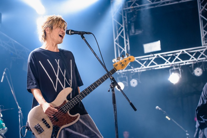 全国各地を廻ってエネルギーがみなぎっているwyseと、この日を待ち望んでいたオーディエンスの熱で早くもフロアは一体に。イントロから歓声が上がった「J・E・T」では盛り上がりまくり、痛快なロックンロール「Rollin’ Rollin’」も新しい曲とは思えないぐらいの熱気で月森とTAKUMAのヴォーカルの掛け合いもスリリング、MORIのギターソロも冴え渡る。今から16年前にリリースされた懐かしい曲「3years later I.」もプレイされるなど、予測がつかないセットリストだ。そして、ステージに立っている4人は時間を止めてしまったのでは? と思うぐらいにフレッシュでアグレッシヴだった。月森は下手上手と動きまわりながら歌い、ベースを弾きながら歌うTAKUMAもステップを踏み、ジッとしていられない様子である。
